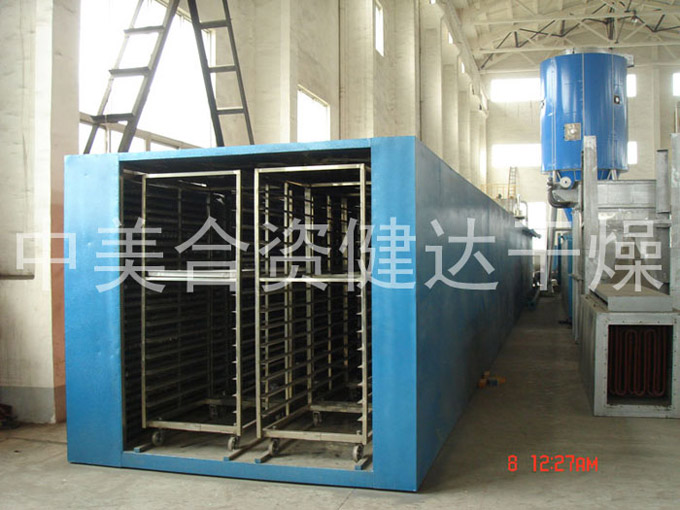 圖二、如果產(chǎn)量大可采用下圖SD型隧道式熱風(fēng)循環(huán)烘箱: |
