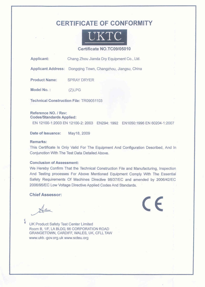 隨著健達(dá)干燥的產(chǎn)品在世界范圍內(nèi)的廣泛使用,尤其是歐洲客戶的增多,獲得ce認(rèn)證是勢(shì)在必行的,同時(shí),能順利快速地通過ce認(rèn)證,也是對(duì)我們產(chǎn)品高質(zhì)量一種肯定,同時(shí),有了ce認(rèn)證,我們的產(chǎn)品以后會(huì)越來越多地銷售到歐洲市場(chǎng),我們以后也會(huì)嚴(yán)格按照認(rèn)證的要求和項(xiàng)目,精心做產(chǎn)品,嚴(yán)格把質(zhì)量。