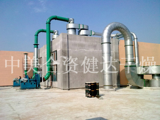 氣流干燥機熱效率高氣流干燥采用氣固相并流操作,而且,在表面氣化階段,物料始終處于與其接解的氣體的濕球溫度,一般不超過60~65℃,在干燥末期物料溫度上升的階段,氣體溫度已大降低,產(chǎn)品溫度不會超過70~90℃。因此,可以使用高溫氣體。一根直徑為0.7m長為10~15m的氣流干燥管,每小時可處理25噸煤或15噸硫銨。氣流干燥器設(shè)備簡單,占地小,投資省。與回轉(zhuǎn)干燥器相比,占地面積減小60%,投資約省80%。同時,可以把干燥、粉碎、篩分、輸送等單元過程聯(lián)合操作,不但流程簡化,而且操作易于自動控制。應(yīng)用范圍廣氣流干燥可使用于各種粉粒狀物料。
